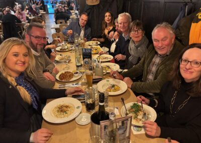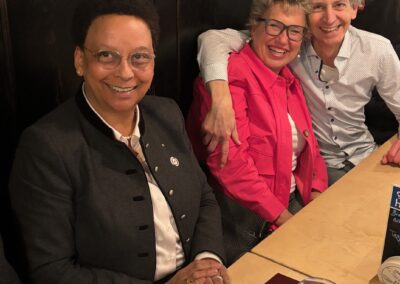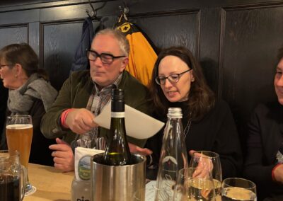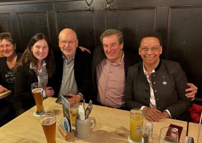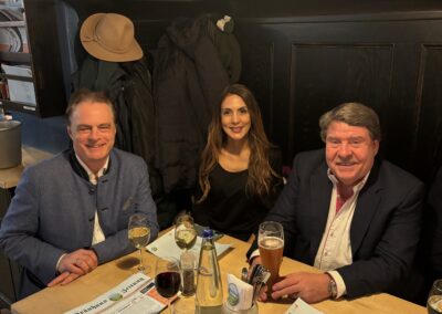 Das internationale Service-Team sorgt für hervorragendes Essen und reichlich Getränke, wie auch auf den Bildern zu erkennen ist. In entspannter Atmosphäre entwickelten sich zahlreiche angeregte Gespräche – von aktuellen politischen Themen bis hin zu den hohen Kosten des Schweizer Zahlungsverkehrs. Der Spaß der Gäste stand dabei klar im Vordergrund: ein rundum gelungener Abend.